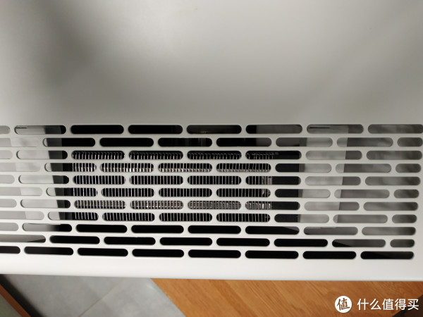 通过进风口可以看到内部的风扇电机和初效滤网,初效滤网在使用中无需更换,只要定期清理就可以了。