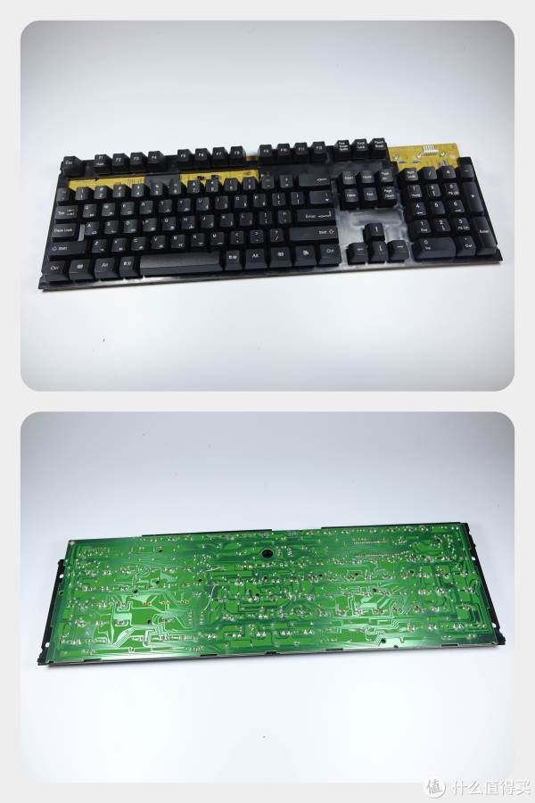 ▲先来看看PO主这把碎成什么样了吧,PO主猜测这把键盘使用的是PS材质,此材质的特性就是脆,易损坏,但是成本较低。