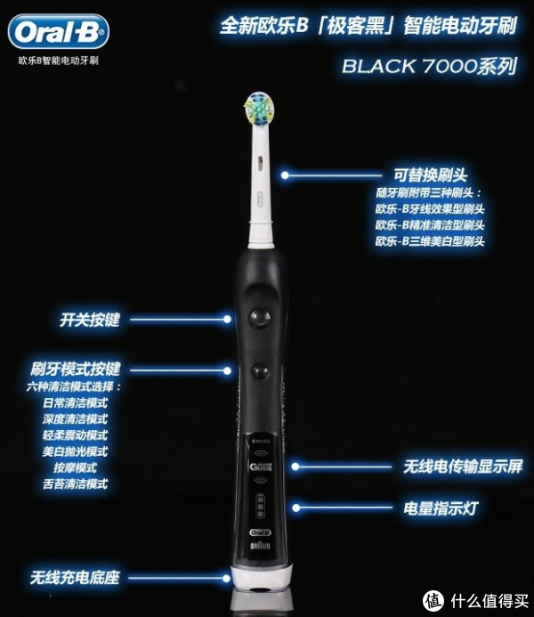 欧乐-B 7000系列 电动牙刷外观展示(刷头|便携盒|指示灯|按键|手柄)