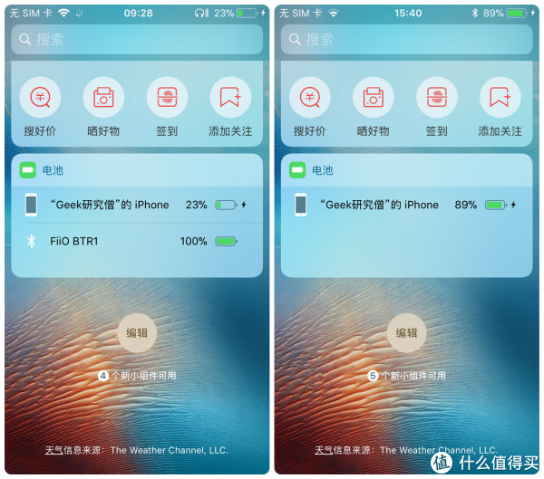 iPhone可以显示电量,安卓只能显示大概的电量。