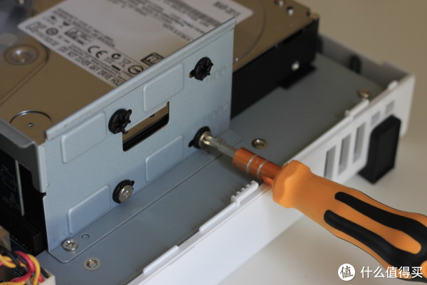 ↓硬盘槽,硬盘安装是需要用螺丝进行固定的,有点不太方便,无伤大雅。