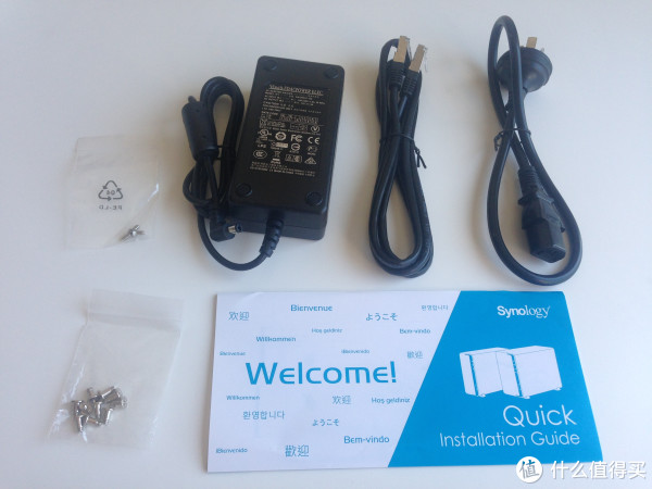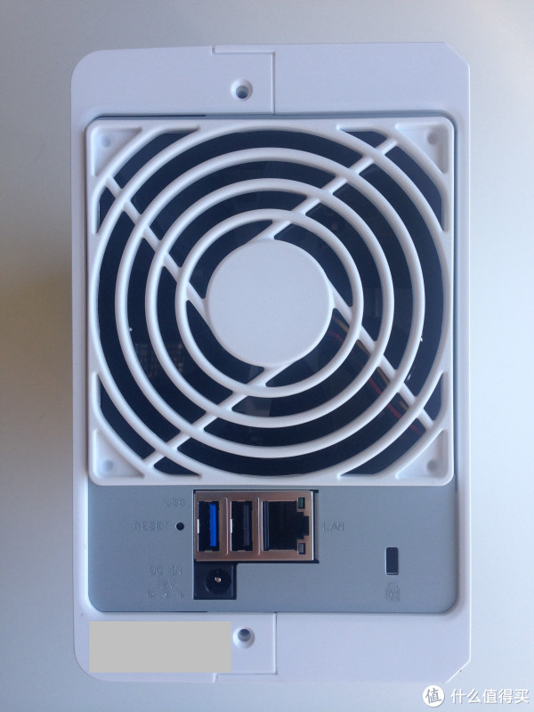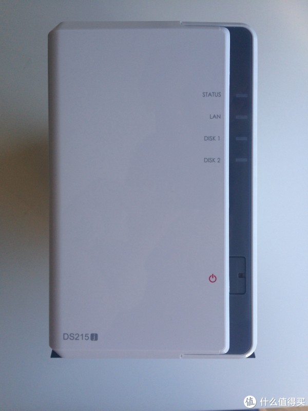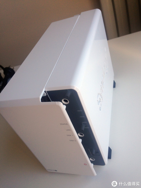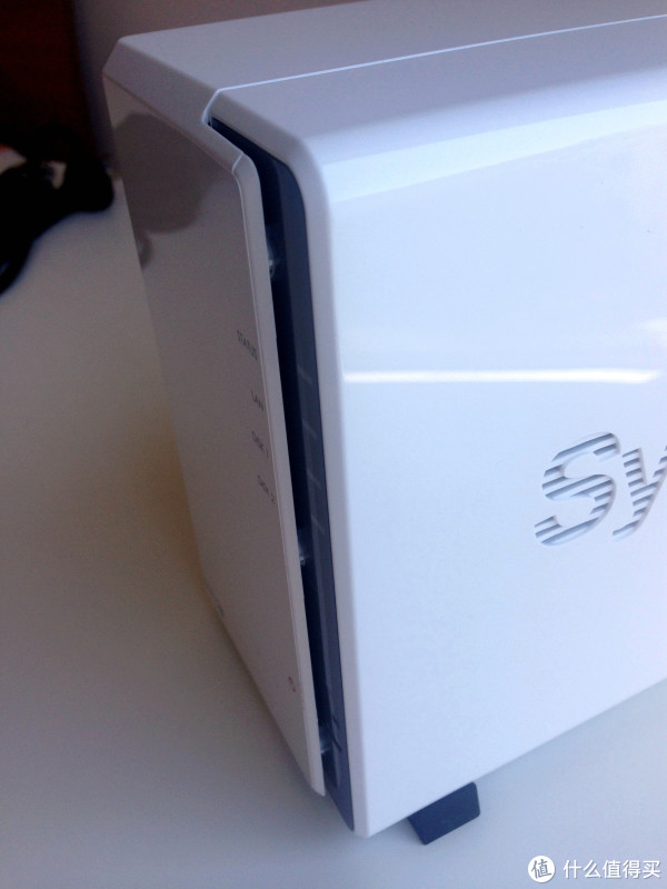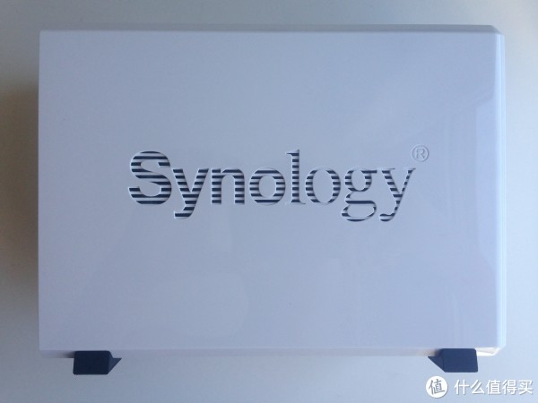 ↓拆开之后,一股浓浓的塑料气息扑面而来,果然低端货就需要在意这些了,好在外形还不错,材质什么的就忍了吧。正面状态灯、网络链接指示灯、两块硬盘灯;侧面经典的镂空设计的Synology散热孔;背部一个千兆网口、两个USB接口(一个3.0)、电源接口、防盗锁扣,真心是“够用就好”啊。