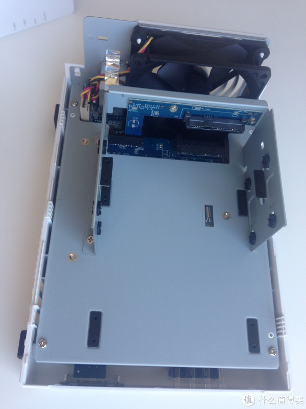 ↓ 侧滑的方式打开机箱,进行硬盘安装,尴尬的是从侧面看前面板左右两块是前后错开的,中间有5mm的缝隙,这个设计我就不说啥了。。。