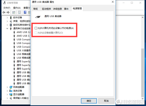 ▼最后,一拖四的HUB一般不会有什么问题,插上就用,毫无压力。如果是一拖七,就有可能会发生插上之后只有三个USB接口能用,另外四个USB接口不能用的情况,这个具体的原因,我们下面拆解的时候讲。解决办法就是,打开电脑的设备管理器,找到通用串行总线控制,然后找到通用USB集线器的属性,然后把电源管理的解决电源这个选项关掉,有多少关多少,反正无所谓,不缺这点电,也省不了什么电,设置完之后再用,就不会有问题了