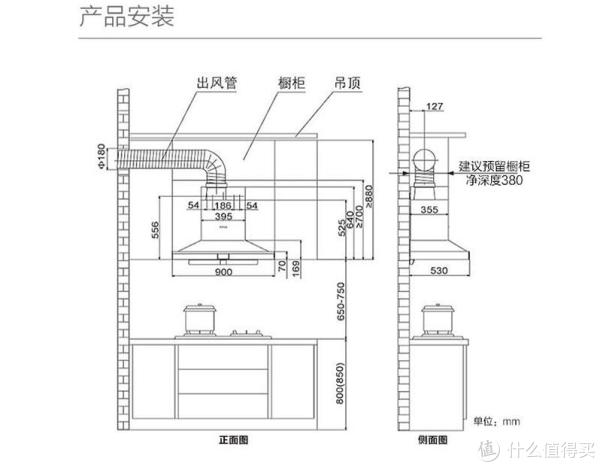 收到货,就可以预约安装了。先给大家看几张官网的尺寸参数图,有需要的值友根据自己家厨房的情况,仔细看一看。