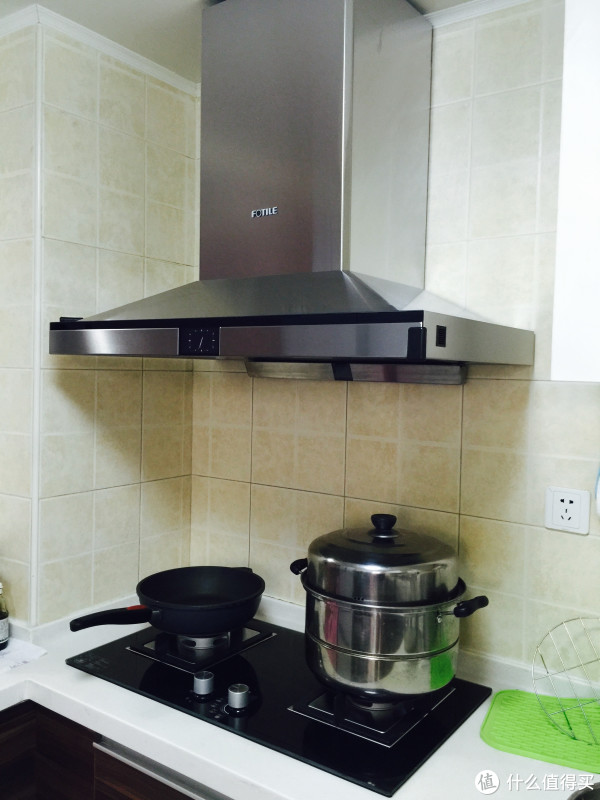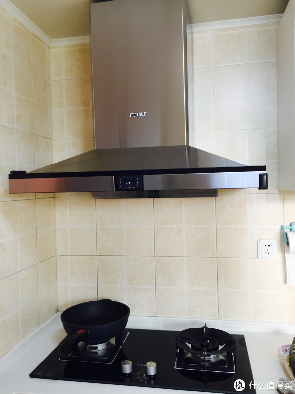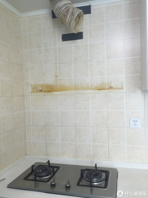 这里再次表扬一下方太安装师父,之前楼主放了一张拆卸下原来旧油烟机的图片,墙壁上看的很清楚,有很深的油渍,方太安装师父帮楼主都擦干净了!下图就是师父帮忙擦的,墙上已经看不见油污啦,很干净!