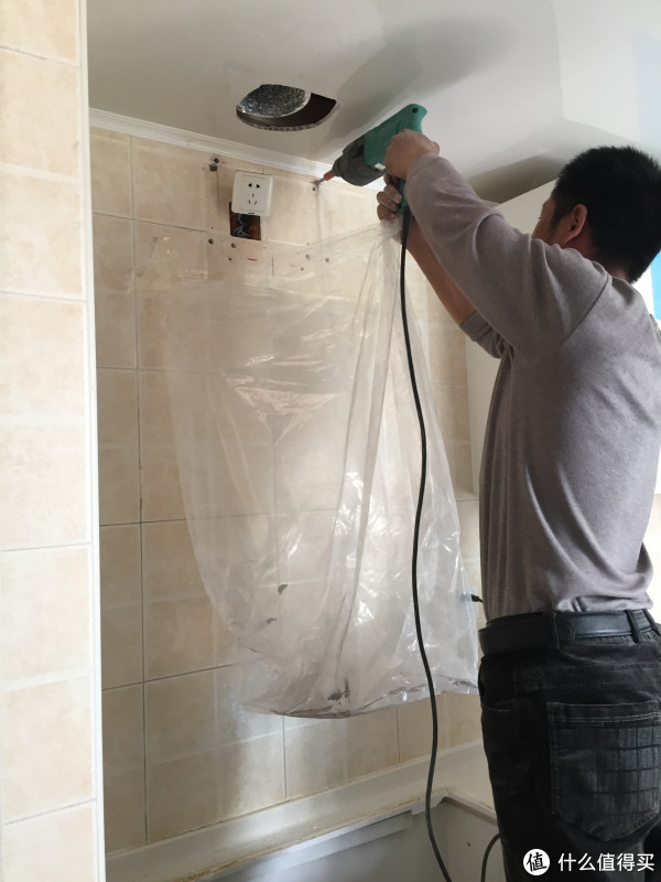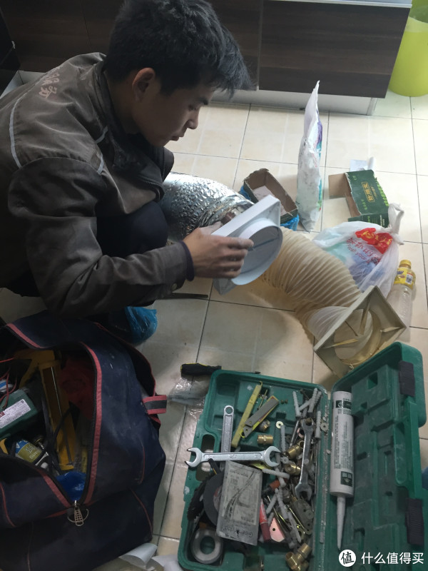 安装完排烟管,就快多了!挂油烟机之前,需要在墙上打孔。打孔的时候,方太的安装师父也是用塑料袋接灰,弄的很干净呢!楼主觉得这帮小师父真挺辛苦的,安装个油烟机和燃气灶,需要打孔,这个墙上打孔还好说,粉尘没那么大,燃气灶打孔的时候真是漫天粉尘(下一篇关于燃气灶的原创楼主会给大家展示一下),这帮师父这么小的年纪,肺会不会不太好啊!