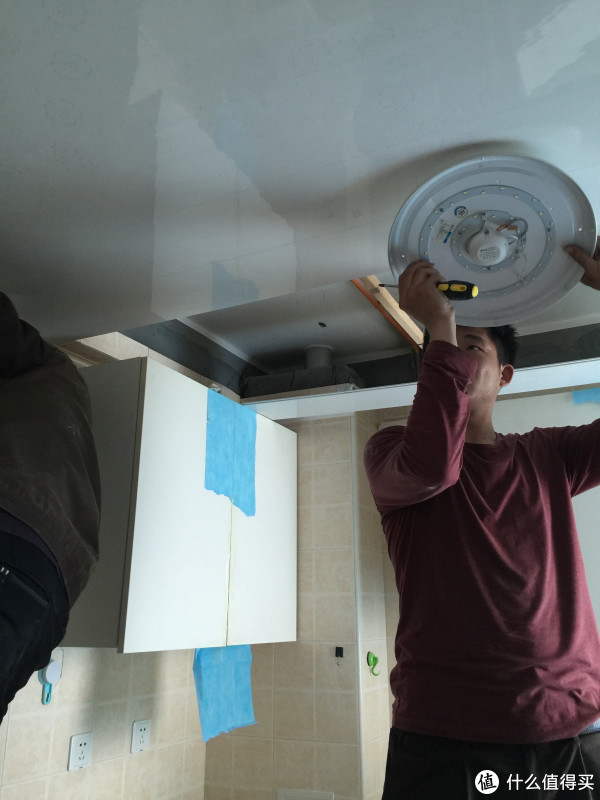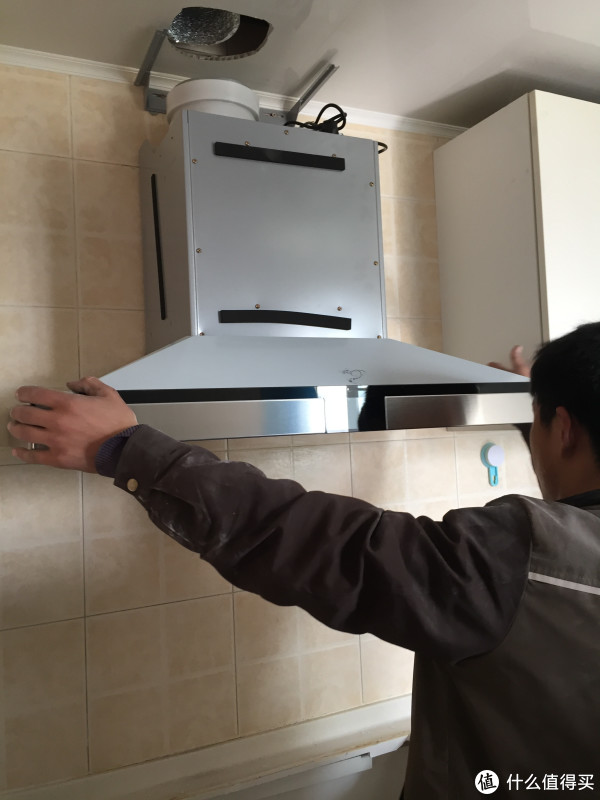 因为楼主家不是新装修的房子,所以需要先把旧的油烟机拆下来,然后把新的油烟机挂上去。这里工程就比较复杂了。因为装修好的房子有厨房塑钢板吊顶,所以需要安装师父把吊顶拆下来,然后安装排烟管,最后再把吊顶原封不动安装回去。拆之前楼主是十分担心的,因为怕拆下来再安上去会没有以前好看了。但是方太的安装师父技术还是很不错的!因为楼主同时要安装燃气灶,所以当时一共是三个师傅到场帮忙安装,有一个师傅是专门负责帮拆安吊顶的。拆的时候楼主很担心啊。。。不过安装好了以后惊喜的发现跟没拆之前一毛一样!表扬一下下!