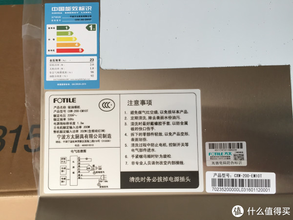 安装之前,楼主拍了一张机器侧面的注意事项及能效标识。
