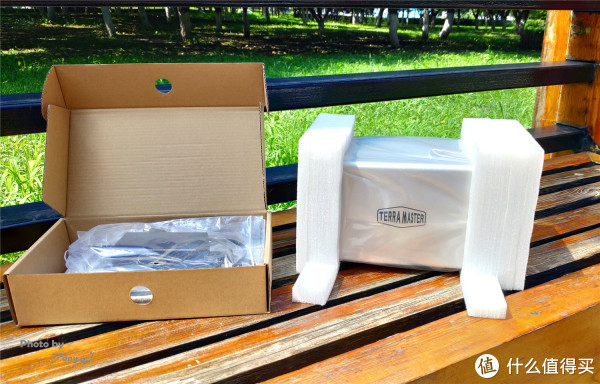 打开包装盒,里面分别是网络存储服务器主机与配件盒,主机采用两头泡沫保护,可以很好的对主机在运输过程中进行保护,配件盒则是由牛皮纸盒进行包装。