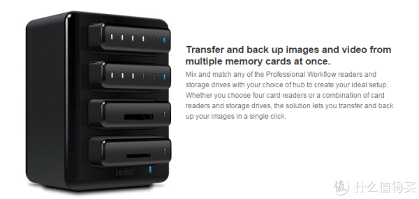 Lexar Professional Workflow,实为一个系列产品,由一个4槽模块框、6个读卡器模块、2个存储模块组成