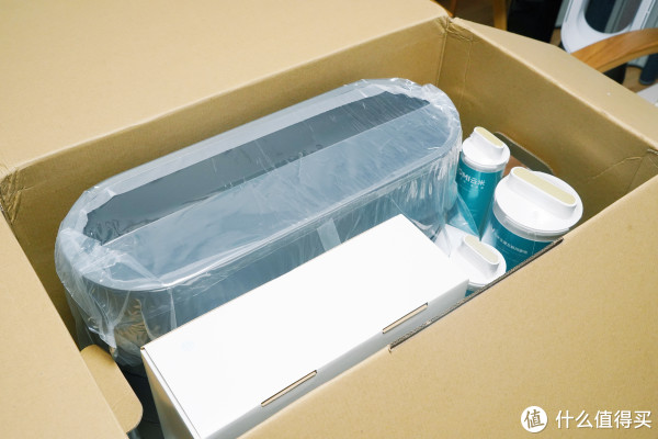 掀开后就是机器、滤芯以及配件盒,特别是机器采用了真空包装。