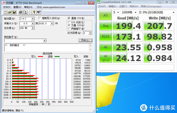 win10下面,Raid1模式,左边是3.1的成绩,右边是3.0的成绩