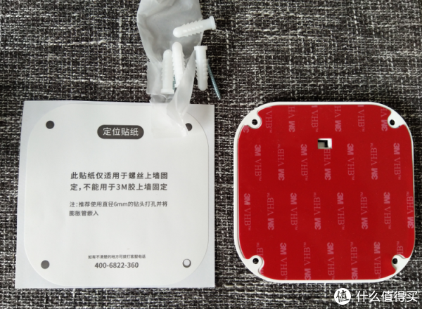 2.装墙壁上,门框边上或者侧面墙壁都可以(我的对门邻居是悍妇,为了不招惹她,我还是装侧面墙壁比较和谐)。定位贴纸对准要装的地方贴上,一把钻对着四个眼位置使劲钻,膨胀螺丝都会用的,底座对准搞好的四个眼儿,上紧螺丝就OK。