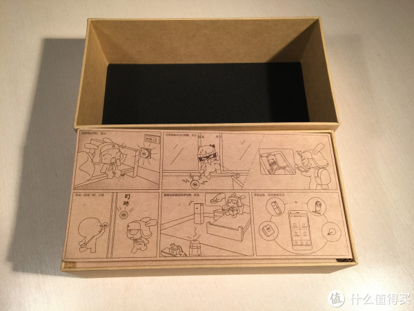 轻轻拿住盒子外壳,内容部分就会缓缓下降露出来,整个过程(阻尼)控制的很好,包装大小很和谐。打开之后显示一组漫画,盒子里面的顶部还有一层薄薄的海绵,防止里面的东西碰撞,包装细节再赞一下!