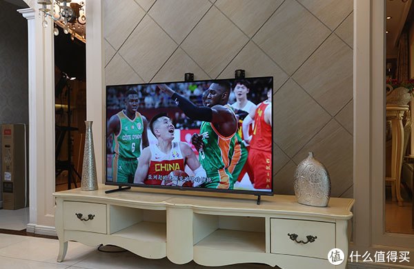 值得一提的是,对于比赛中的哨响声、篮球接触地板的摩擦声以及篮球空心入网的声效,TCL 55T6M电视机都能十分还原地把各种声音传入到我的耳朵中,仿佛就如置身于赛事现场一样。