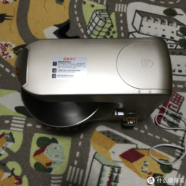 机器顶部贴有产品提示,建议有三点:1.面团别超过1.5kg;2.搅拌黄油前先软化;3.打蛋网只能打液体。