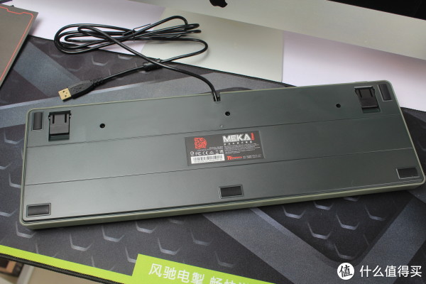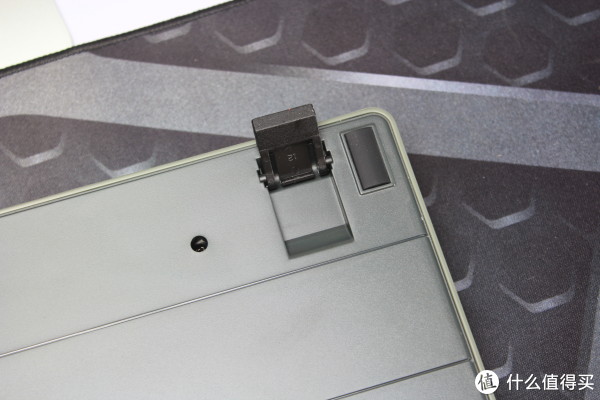 键盘背面,与大多数键盘没什么太大差别,5块防滑贴,两个脚撑。