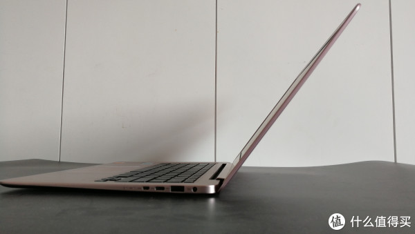 U3000C外观上面应该借鉴的是苹果的MacBook Air系列,刀锋式设计,前薄后厚的设计,玫瑰金色,颜值不错。