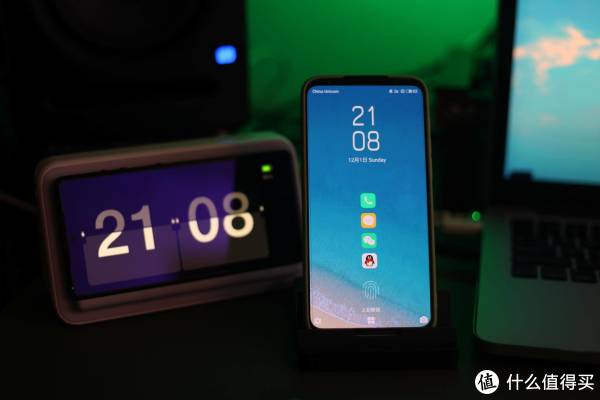 ▲把锤子R1放上去,马上显示充电状态,过2秒左右,就显示大数字时钟了。效果十分好看!!!没有秒数,分钟变化时会有切换动画,效果挺好。当然,要是觉得时钟显示刺眼,按一下电源键关屏也是可以的。不过,谁舍得啊。充满电后,时钟显示还是有的,所以可以一直显示,一直欣赏哈哈。