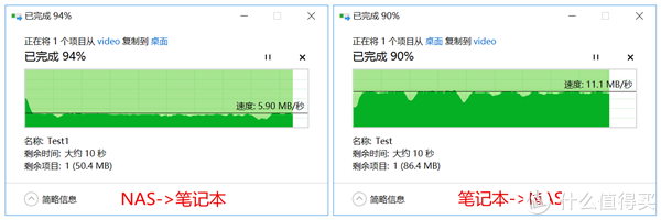 有线连接下与NAS之间的速度,这个速度没什么可比性,是个千兆有线都能达到。