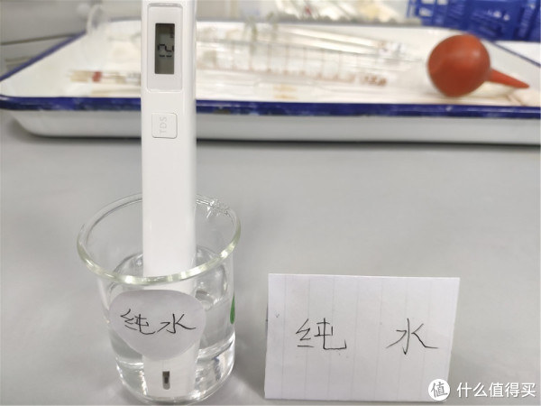 §我的单位就有水处理部门,也有一套RO过滤设备,与佳尼特大白的净化原理相同。为了让大家更详细的了解大白的净化能力,我也专程请教了水处理部门的工程师,经过取经了解到,RO即反渗透膜,原理是这层反渗透膜精度非常之高,孔径是0.0001微米,是细菌和病毒的5000倍,所以可以阻挡这些有害物质通过,但水分子和矿物离子在压力的作用下则能通过这层膜,从而达到净化水的目的,而且整体来讲是业界很先进的水处理工艺了。不过空口无凭,下面我们就进行专业的水质检测,测量包括小米TDS水质检测笔测量,这也是水处理工程师推荐的测量方式,其能检测水中重金属离子、离子型有机物、可溶性离子,能很准确的衡量水质。此外还进行了细菌含量以及电导率检测。每组测试都是在相同的时间取水和检测,测量包括原水(自来水)、纯水以及“有点甜”矿泉水。