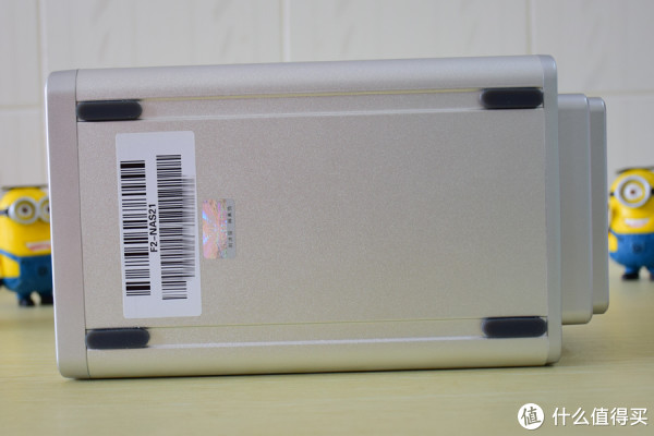 底部四个防震脚垫、贴有一个贴纸:型号条码码与SN码、以及一张防伪贴纸。(这货还能有假的了?)