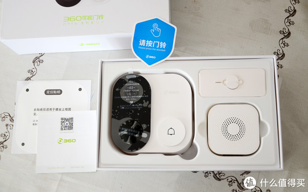 相比传统门铃,印象中只能算提供“提醒”功能,即便有猫眼,也受限于可视角度,而且也没有记录、远程查看的能力。360可视门铃1C,彻底颠覆了传统门铃的局限,重新定义了门铃产品的“智能”属性。360可视门铃1C设计工艺精致,内含门铃主机、门铃室内机、安装底座、定位贴纸、USB电源线、安装螺丝配件、拆卸孔针及产品说明书等。