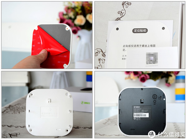 360可视门铃1C提供了胶粘上墙固定和螺丝上墙固定两种方式,可具体根据使用情景选择安装。使用赠送的3M胶粘纸、定位贴、膨胀螺栓,参考说明书即可完成安装。