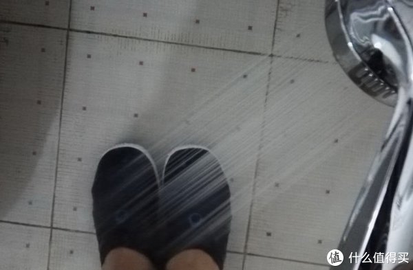 完全浸湿后,穿着鞋子,感觉被整个泡在水里了,鞋子材料吸水还是挺厉害的…… 这真能快速排水?总之穿久了肯定不太舒服就是了。试着走了一圈,瓷砖地面也不是很滑…… 放心了,就怕V底那样。