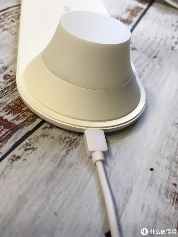 小夜灯的充电必须通过充电底座来进行充电,正面有个充电指示灯和开关按钮,是的是个手动开关按钮,不是红外线感应,这点让我觉得有点不方便,如果能感应对于晚上使用小夜灯应该会更方便吧。