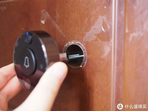 再根据房门厚度来挑选合适长度的安装螺丝,固定在安装柱上后撕下3M胶的保护层就可以将X1穿过猫眼洞了。