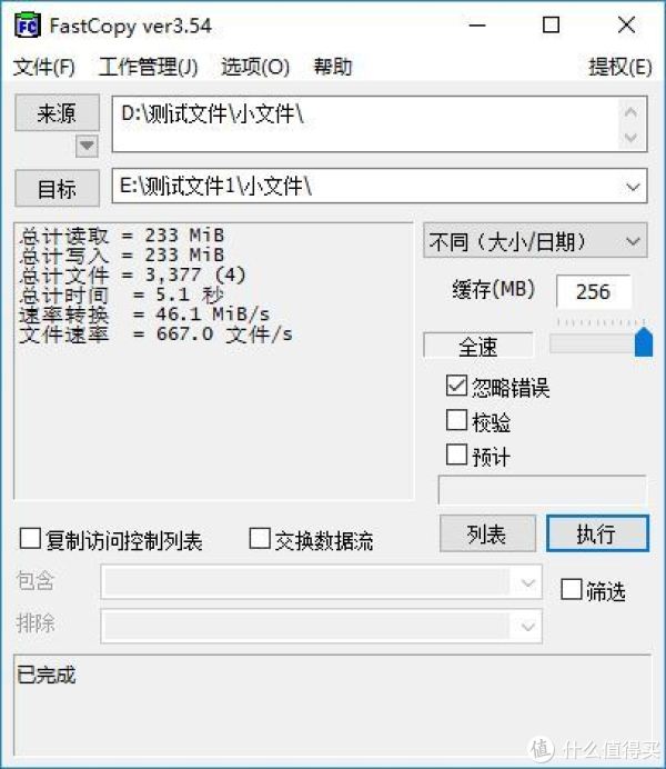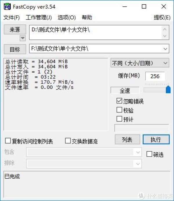 FastCopy是一个复制软件,比系统自带的复制功能要更清楚一些,所以硬盘座上的硬盘读写的测试,笔者就用这个软件来实现了。笔者首先是从金士顿固态硬盘复制单个约34G的大文件到笔记本硬盘上,测试得到的速率是200.3MB/S,这个速率不是金士顿的极限,因为笔者笔记本上的固态硬盘写入性能就这么多了。