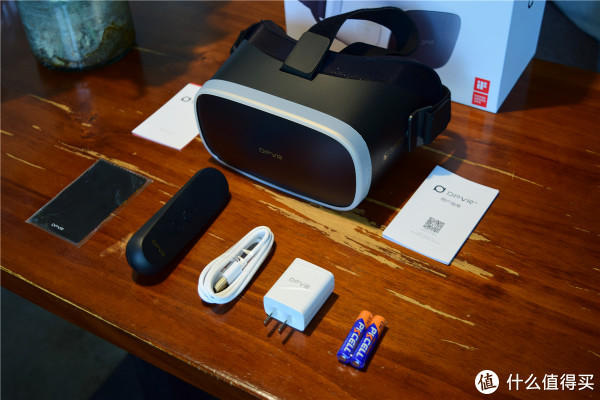 盒中除了大朋P1 PRO一体机外,另外还配备了蓝牙手柄、Micro USB数据线、USB适配器、7号电池*2、擦镜布、说明书和三包卡,配件还是比较简单的。