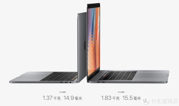 全金属外壳,上手触感冰冰凉,重量有点大。。适合办公,对女生来说绝对不适合带出去用。带出去开会两次,只能装在超大双肩包里,瞬间就木有比格了。。下图是官网MBP13和15的重量。实际上手我觉得不止1.83千克,因为是纯金属质感,单手握持很费劲,而且又滑,老怕手一滑掉地上。。。如果有人问该买MBP13还是15的话,我建议如果需要经常带出去而只有一个本本的话,选13;如果还有额外的便携本可以带着周围走,选15(屏幕大爽的不是一点点)