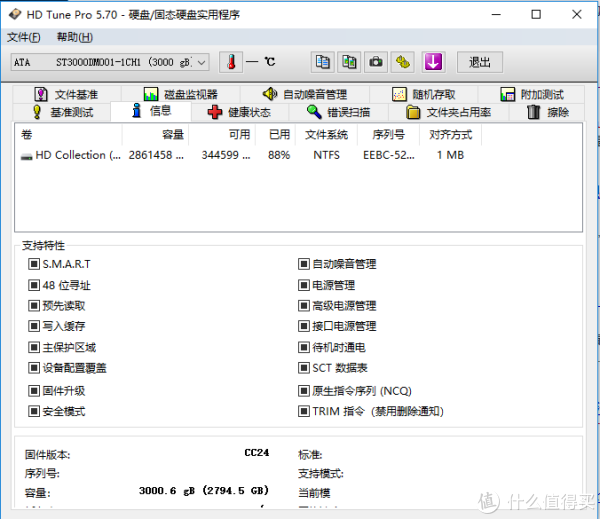 同时ASM1156在HDtune下是可以完整读出硬盘的信息的。