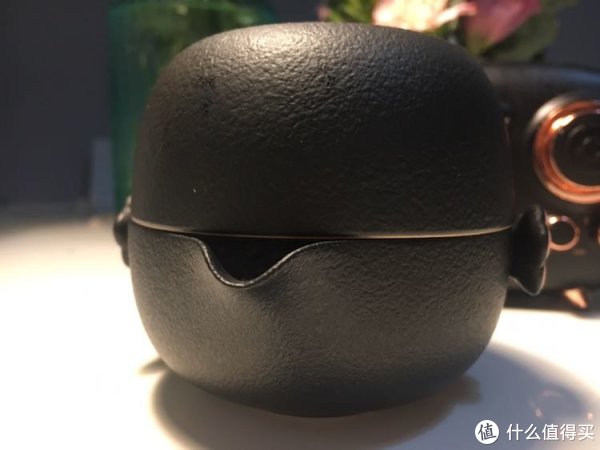 这是泡茶滤茶的部分,像是普通意义上的壶,带滤嘴,全身黑釉。