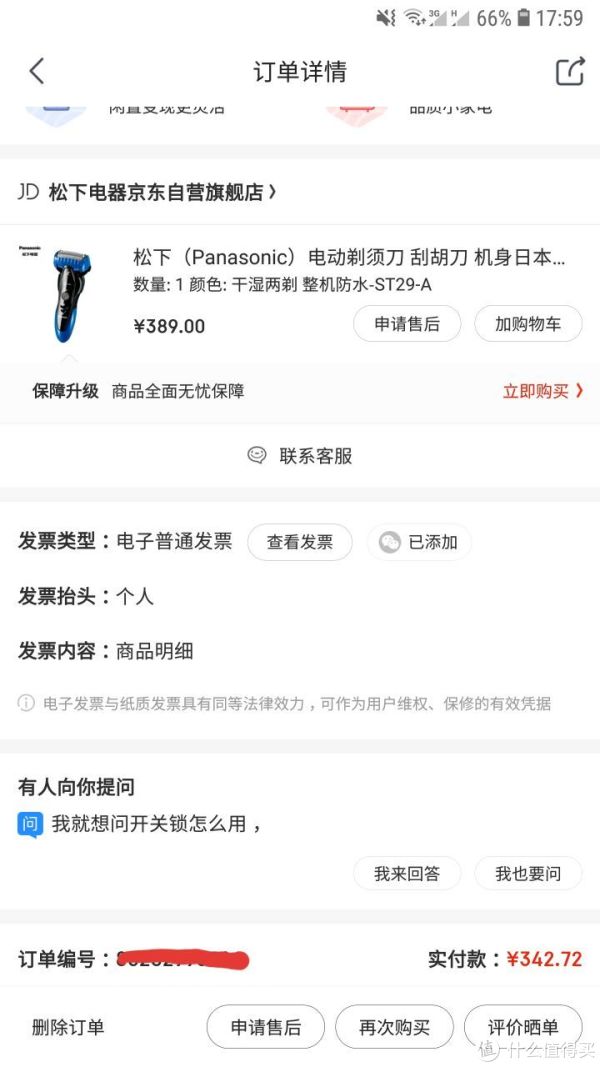 ,这时凑巧在逛张大妈的时候,看到松下这款剃须刀降价,各种优惠券下来总共332,虽然达不到评论里值友说的300以下,但由于刚需最后还是选择了下单