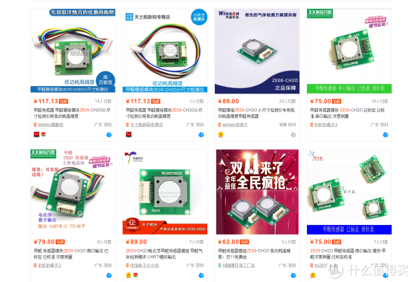 ,淘宝找了下ZE08-CH2O传感器,价格是70到100之间了,看了背后的电子分布都一样的~~这个也就是他所大力宣传的电化学传感技术,基本还可以接受吧。