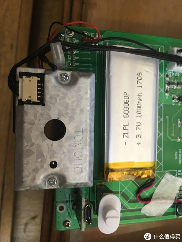 下面很大一块是粉尘传感器,看见钢码标着TOMOHO,上淘宝一看发现是TOMOHO友穗的PM2.5红外线粉尘传感器,大致价格是25到35之间吧,悟空M1的是高级点的激光检测传感器。这个粉尘传感器是最基本款没有过滤网也没有风扇,只靠被动进风。反正平常使用还是可以接受的了~~
