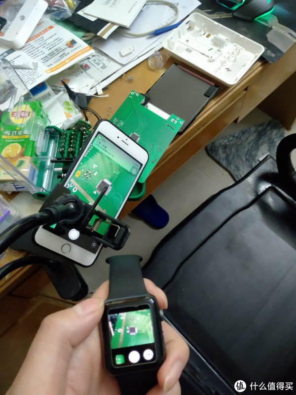 ,这块电池只能让其外出续航大约3小时吧~~~不过聊胜于无。拆开那块瞎眼的LCD显示屏后,就看到两块芯片。可能我撸多了手不稳,加上自己拍照技术差,只能拿个手机夹来稳定帮手