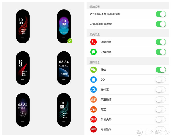 消息通知方面,默认支持短信以及电话拒接,默认开通微信,并支持常用应用,可以开通所有通知提醒功能。