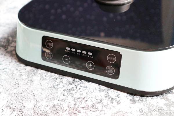 触摸屏操控,有火锅和营养蒸两种模式,区别就是蒸的状态下,升降架默认是升起来的,火锅模式默认沉在底部。两种模式的火力都可以自行通过加减键调节,从文火到猛火,最大功率1500W,足够使用啦。
