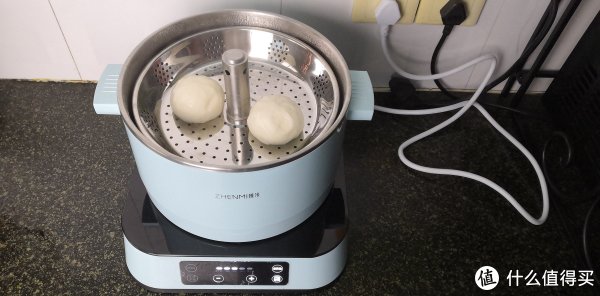 当然臻米智能升降火锅,并不只是简单的用来吃吃火锅。正是因为巧妙的一键升降功能,以及提篮的设计,它也可以是一口标准的电蒸锅。比如早上起来,锅底加入水,加提篮升起,放入几个包子,开启营养蒸模式,轻轻松松,一顿早饭就搞定了。甚至还可以提篮蒸食物的同时,锅底煮粥,简直就是一举两得。