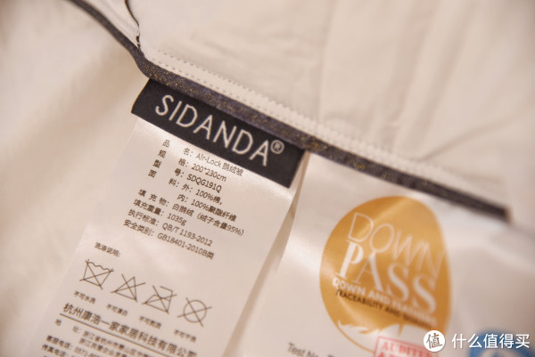 具体看一下面料,常见床品的面料一般分为40、60、80、100支。简单的理解,数值越大,面料就越细腻,普通一般都是40支左右,刚才的钱皇是60支,而这款SIDANDA采用的是100支的棉质面料,在照片上看不太出来,但实际面料已经有轻微的反光效果了,说明面料的质量、做工,都是很不错的。