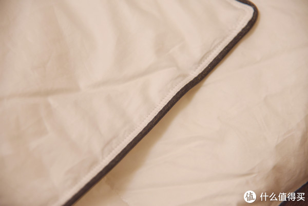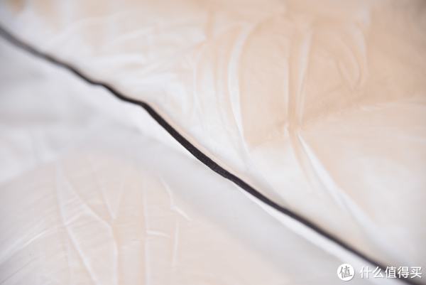 ▼羽绒被还有很关键的一点就是面料。和其他被子不同,羽绒被的面料非常重要,因为大家都穿过羽绒服,处理不好的羽绒服钻毛钻到让人崩溃,更别提这么大的羽绒被了。在上图中可以看到,这款的面料很独特的分为内外两层,内侧为聚酯纤维,最大化的防止钻毛;外侧为100棉,提升舒适程度,还是很精细的。
