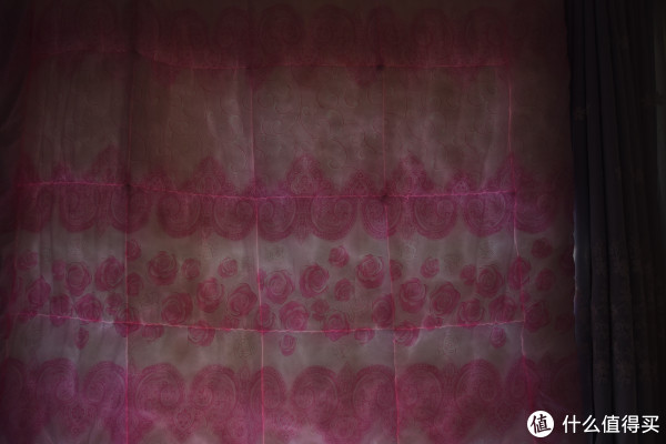 这里就整体说吧,首先化纤被虽然也是格子状分隔开的,但因为材质的特殊性,只有缝合的一条线上有些透光,整体的疏松程度也可以;棉花被是质地最密的,而且不存在分隔的情况,整体比较均匀,但是可以看得到,棉花被的缝隙非常少,以至于挂上去达到了遮光窗帘的效果