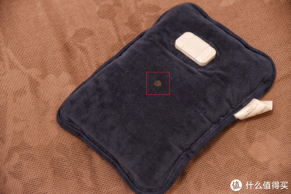 ▼因为热水袋的不同位置也会导致温度不同,所以在用荧光笔画了一个点,尽量保证测试的准确性。