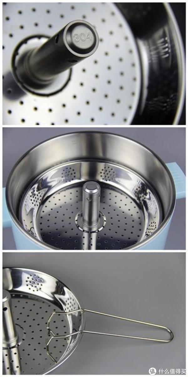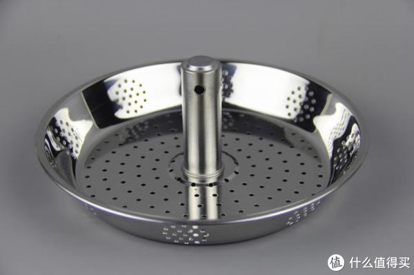 作为升降火锅,那一定少不了升降层。臻米升降火锅搭配了提篮这样一个看起来更像蒸格的配件,满身通孔,深盘口设计,同火锅锅具一样中心位置有一个突出的圆柱体。将提篮和锅具分离,锅底放火锅锅底底料,提篮上放火锅食材,两者互不混合,为升降火锅提供分离平台。
