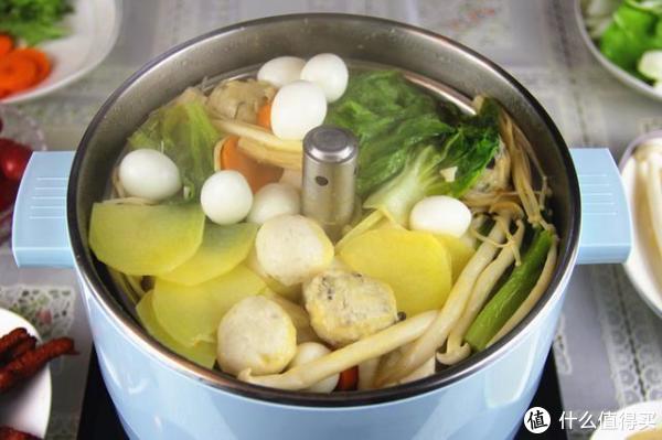 看完底座,接下来我们来看看锅具。刚看到锅具的第一眼,还以为是一口煲汤锅。高亮彩色外壳丝毫看不到锅体本身材质,文艺范十足。配色方面共有青、蓝、红三种靓丽颜色可供选择,让你在寒冷冬日里也能感受到热情气息。2.5L的容量完全可以满足一家人的食用需求。